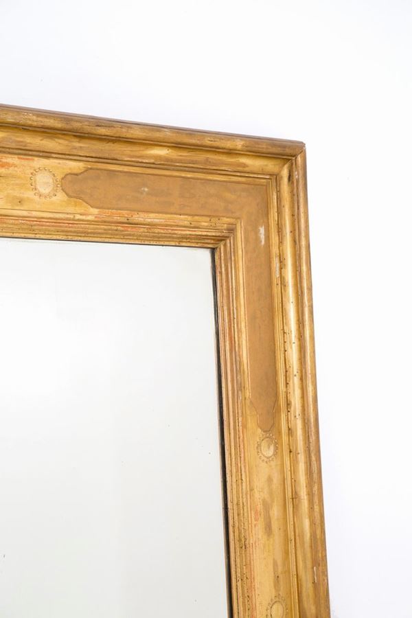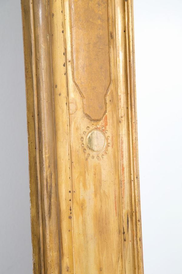 Grande cornice in legno dorato, inciso e bulinato. XIX secolo.