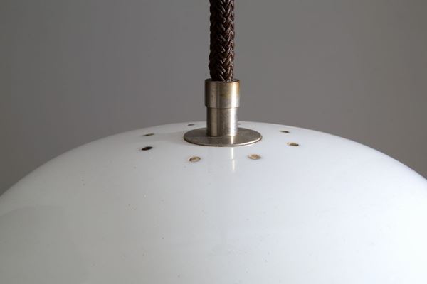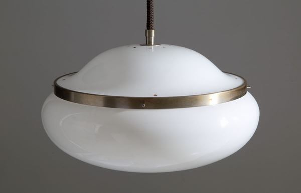 Lampada Space Age in plastica e ottone nichelato. Per Kartell. Anni '60.