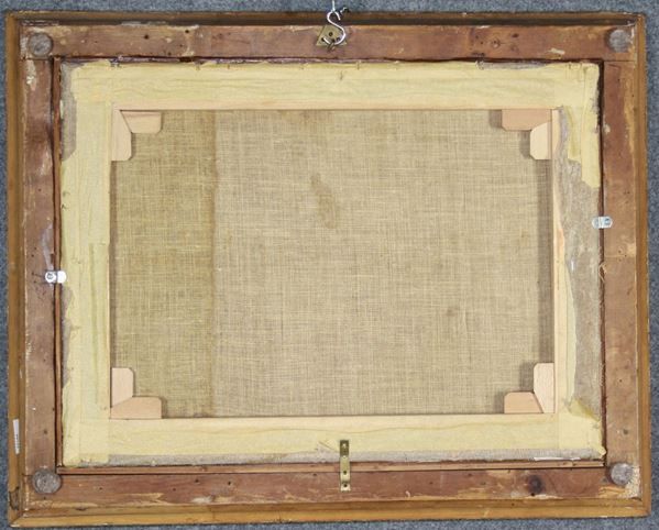 Dipinto olio su tela raffigurante ''NATURA MORTA''. In cornice. Rintelato e rintelaiato.
