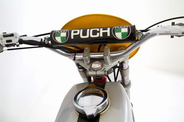Moto PUCH MC 175 regolarità. Cilindrata 169 cc. Numero telaio 2600421. Targa: AM 95300. Anno di immatricolazione 1971. Con certificazione di conformità storico-tecnica della Federazione Motociclistica Italiana, Registro Storico Nazionale n. 89815 del 31.07.2008, tipologia regolarità-classica.