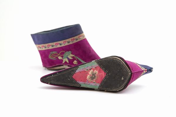 Scarpe in stoffa decorate a piccolo punto. Cina. Fine XIX secolo.