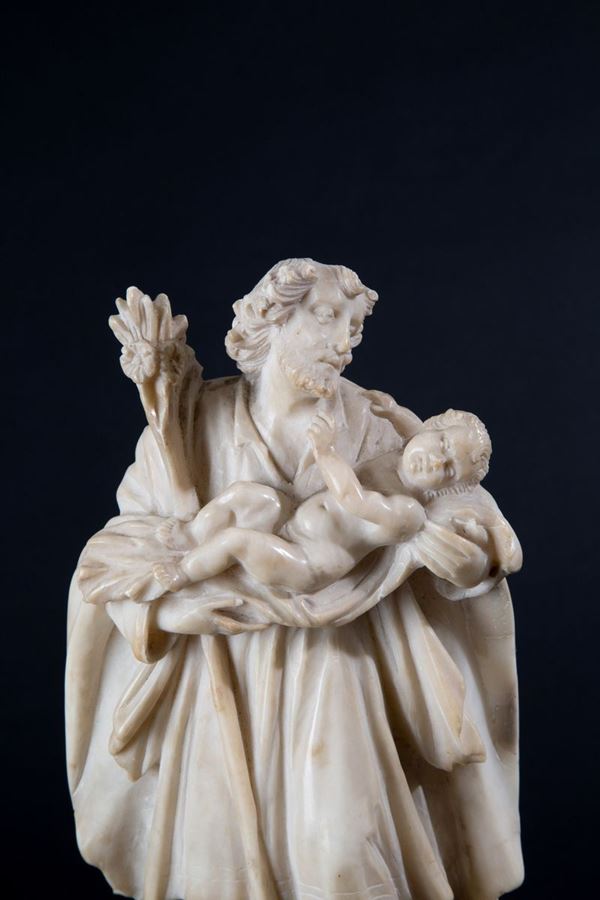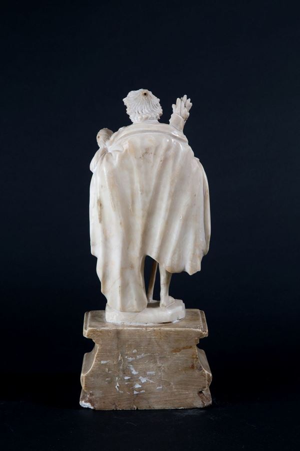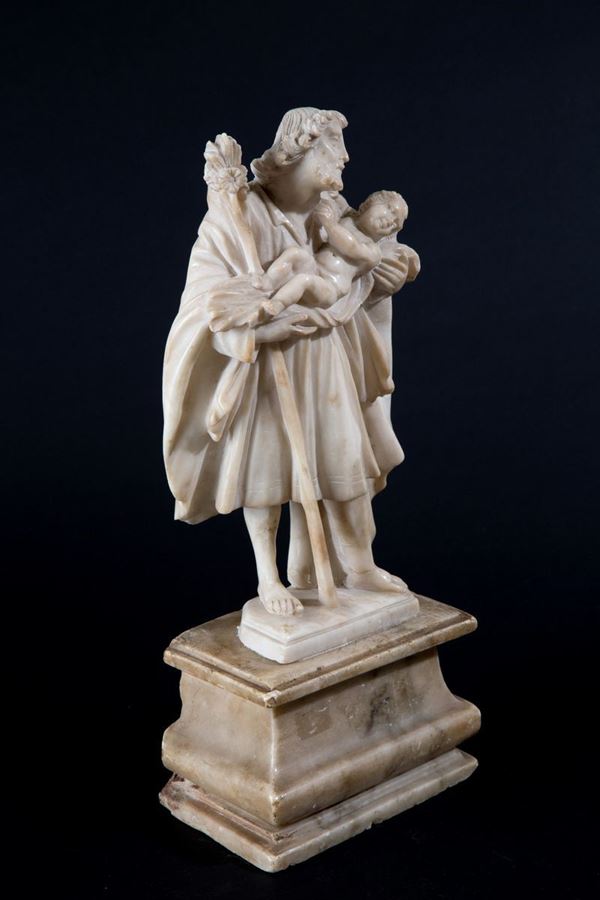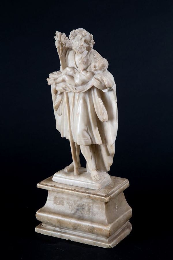 Scultura in marmo raffigurante "SAN CRISTOFORO". Base in marmo. XVIII secolo. Difetti.