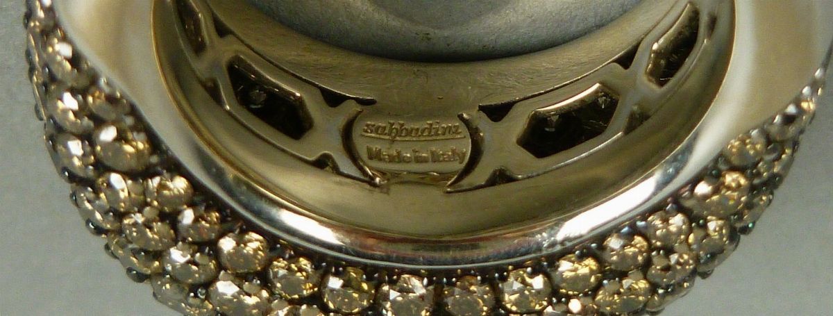 Anello in oro bianco 18 kt. con grande pavè di diamanti bruni naturali, ct. 8,68 ca. totali, gr. 15,6 ca. complessivi. Firmato SABBADINI. Eccellente qualità di manifattura e realizzazione. Misura modificabile.