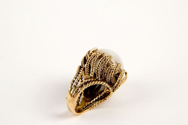 Anello in oro giallo 14kt con perla emisferica Mabe, gr. 15,97 ca. complessivi.