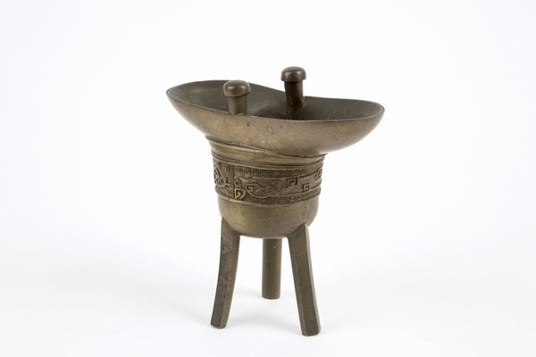 Antico vaso in bronzo. Con marchio inciso sul fondo. Cina.