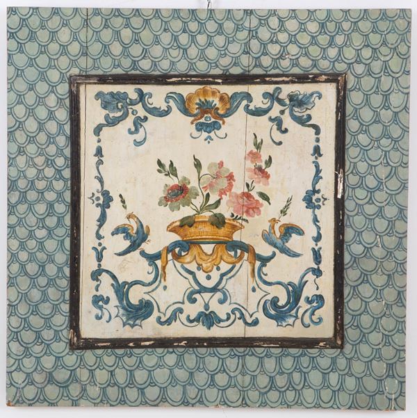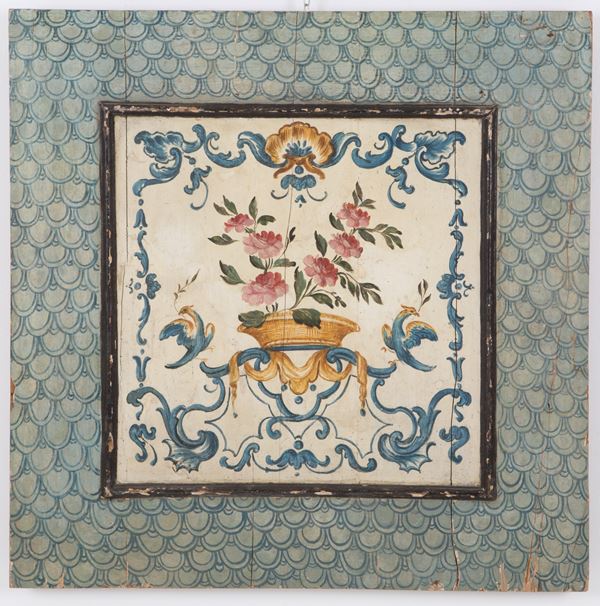 Coppia di pannelli dipinti e laccati. Sicilia. XVIII secolo.