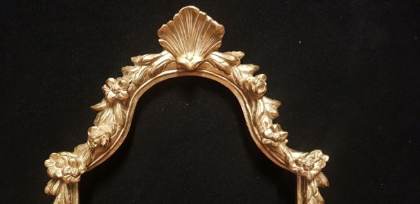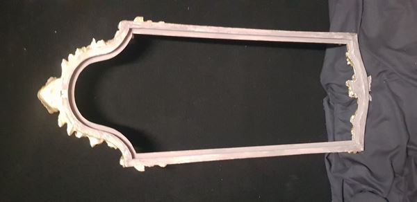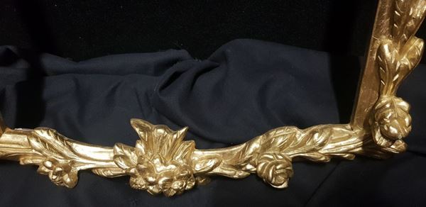 Cornice per specchiera in legno intagliato e dorato.