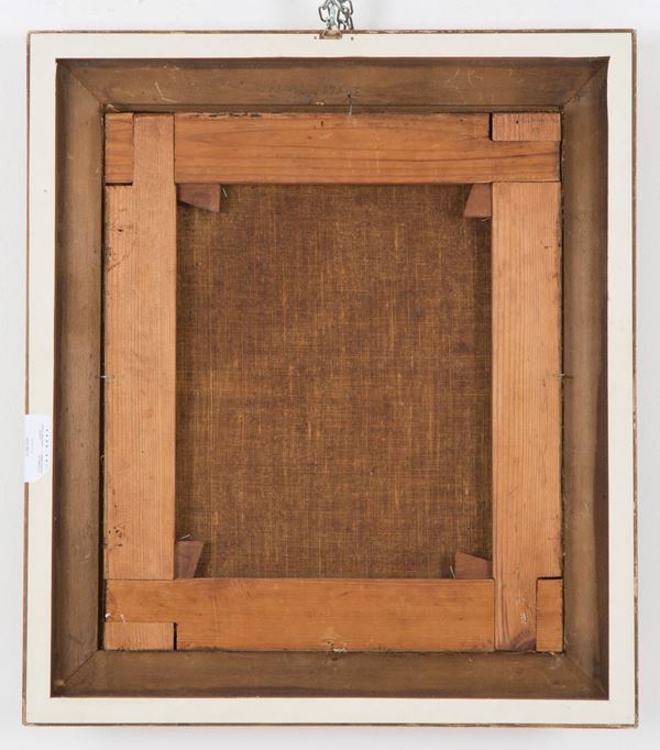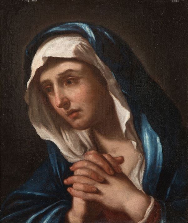 Dipinto olio su tela raffigurante "MADONNA ORANTE". In cornice dorata non coeva.