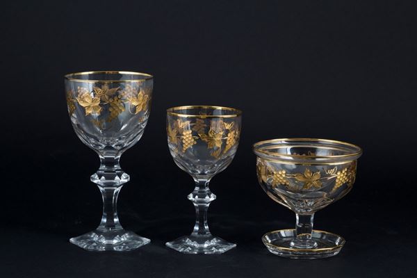 Servizio da quarantotto pezzi in cristallo e oro zecchino.