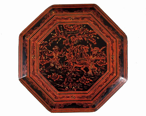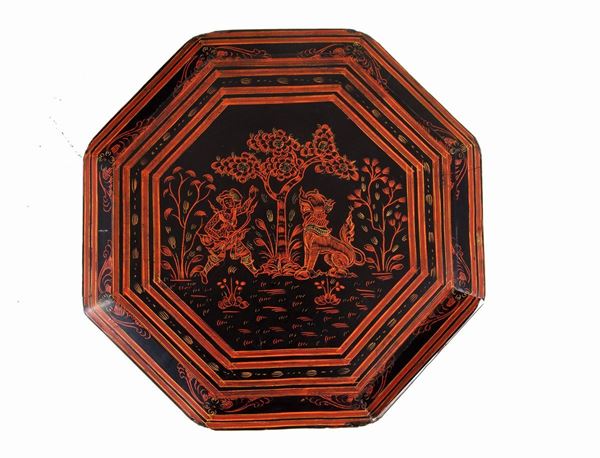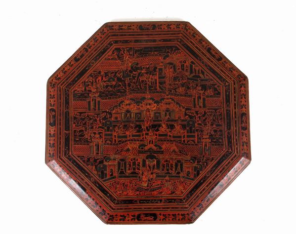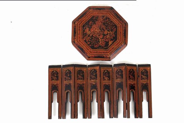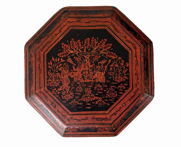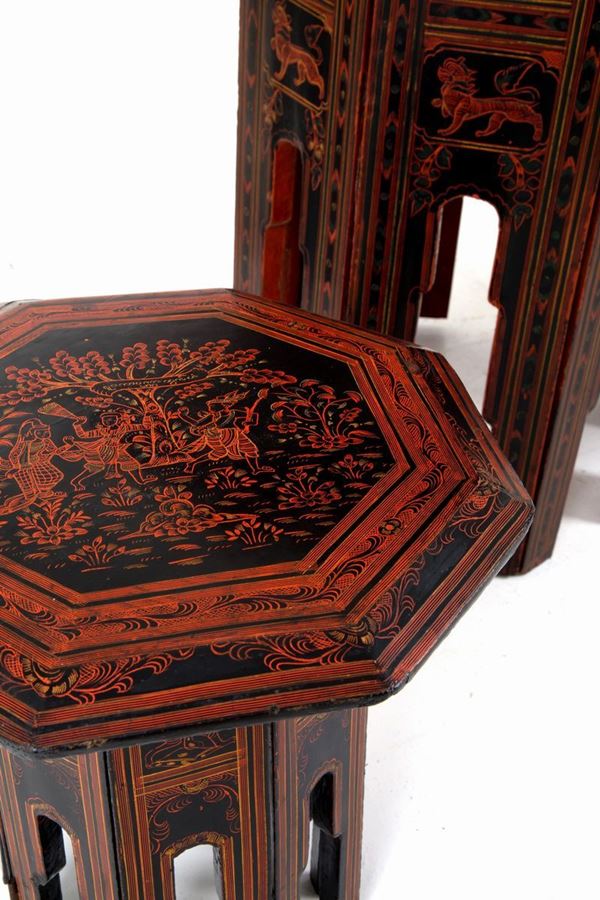 Tavolino Vittoriano con quattro sgabelli in olmo cinese.
