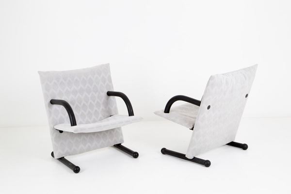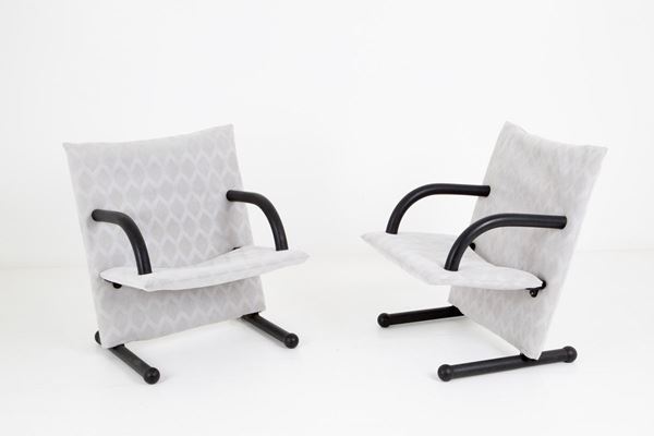 Coppia di poltrone T-line in alcantara. Produzione ARFLEX. Anni '80. Difetti.