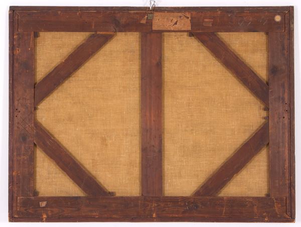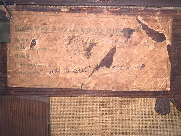 Dipinto olio su tela raffigurante "PASTORE CON ARMENTI". Già rintelato.