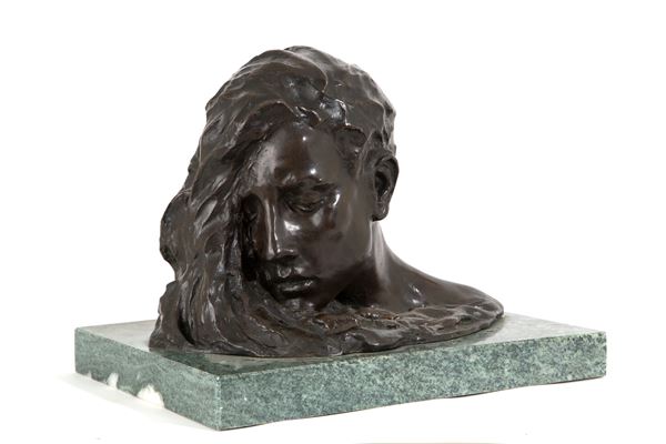 Scultura in bronzo raffigurante "VOLTO FEMMINILE". Firmata G. VECCHIO alla base. XX secolo.