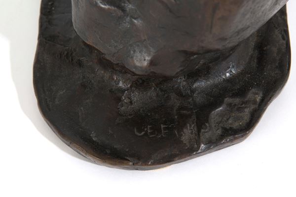 Scultura in bronzo raffigurante "CANE SEDUTO". Firmata sul fianco.