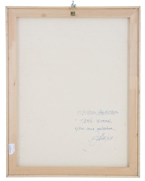 Dipinto olio su tela intitolato "TAMIL WOMAN". Firmato in basso a sinistra. Controfirmato, intitolato e con autentica dell'artista sul retro. In cornice.