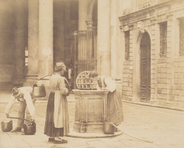 Stampa all’albumina su cartone “N.165 DONNE AL POZZO”. Numero e titolo scritti in basso a sinistra. 20x25 cm su carta 26x36 cm.