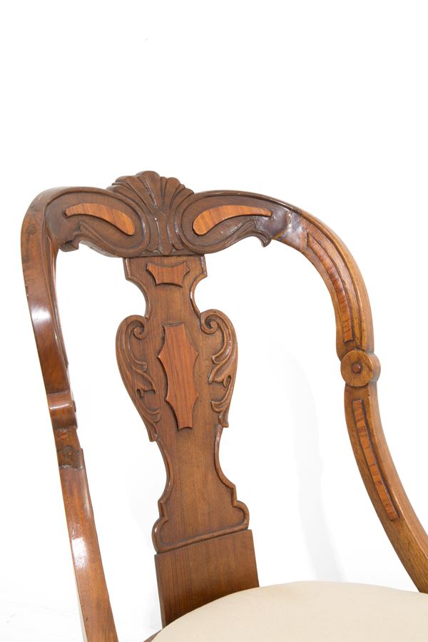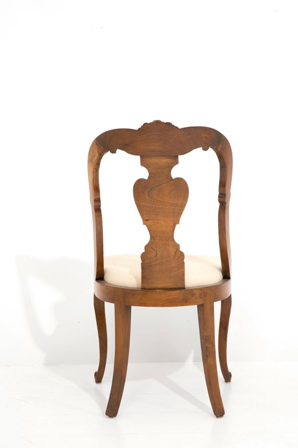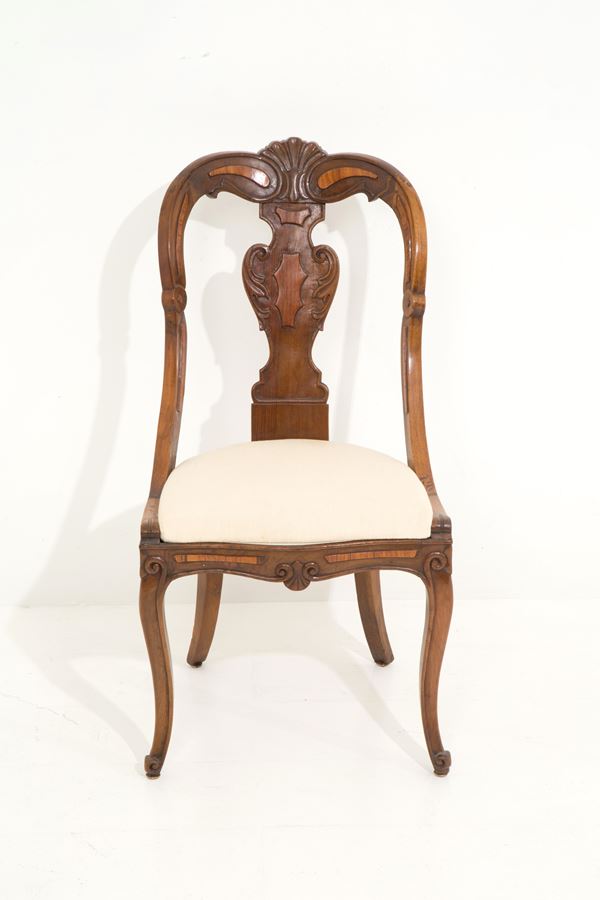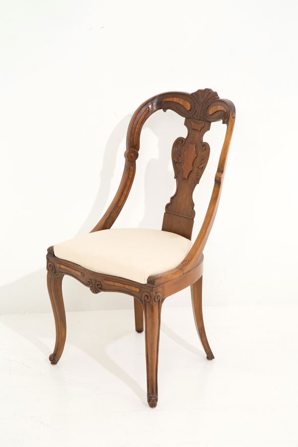 Sei sedie in noce con applicazioni in bois de rose. XIX secolo.