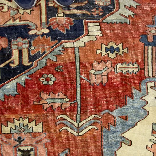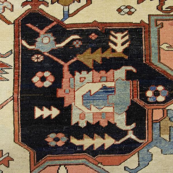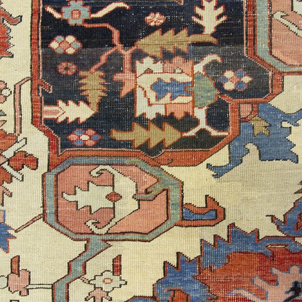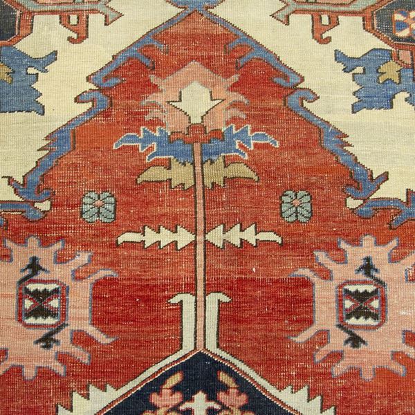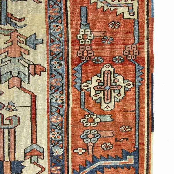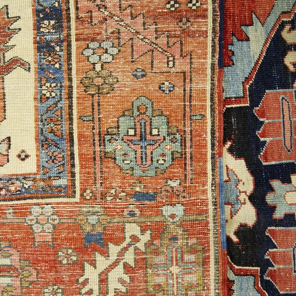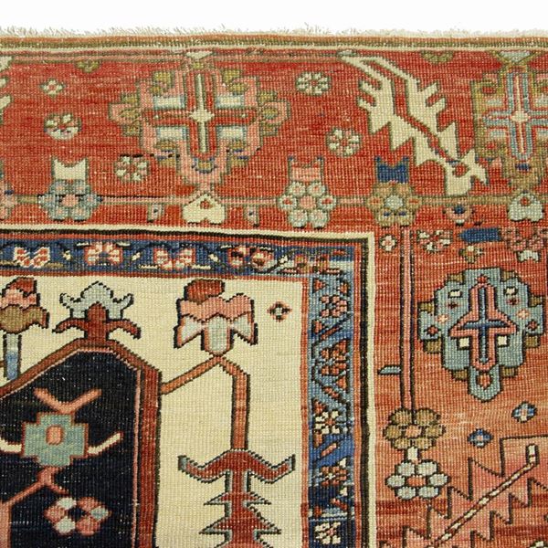 Tappeto Heriz. Persia. Seconda metà del XIX secolo. Buono stato di conservazione, usure naturali del tempo e vecchi restauri.