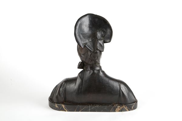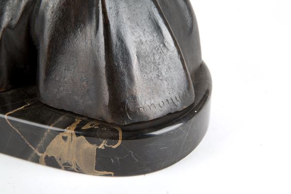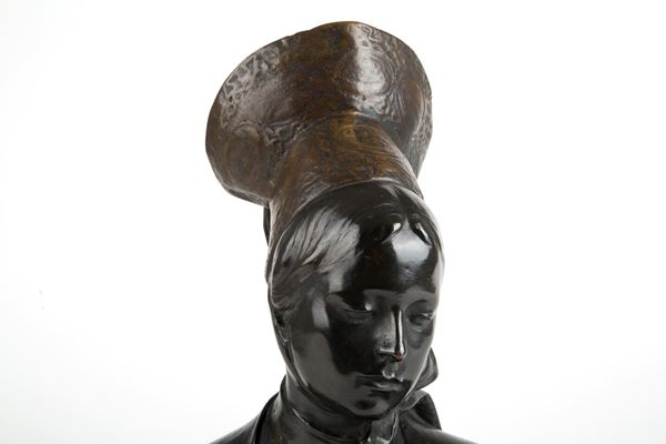 Scultura in bronzo patinato raffigurante "POPOLANA" su base in marmo nero. Firmata in basso a destra.
