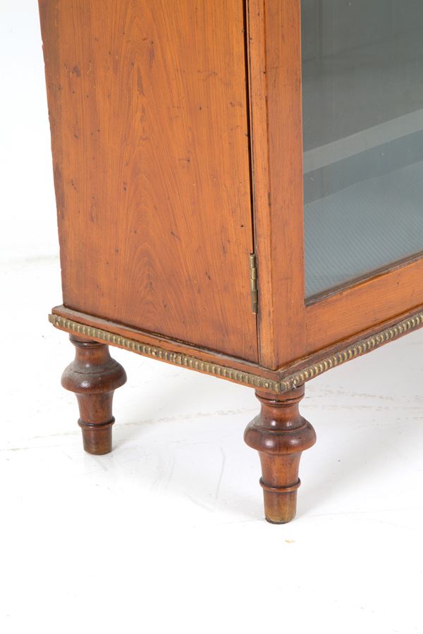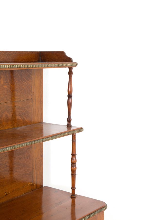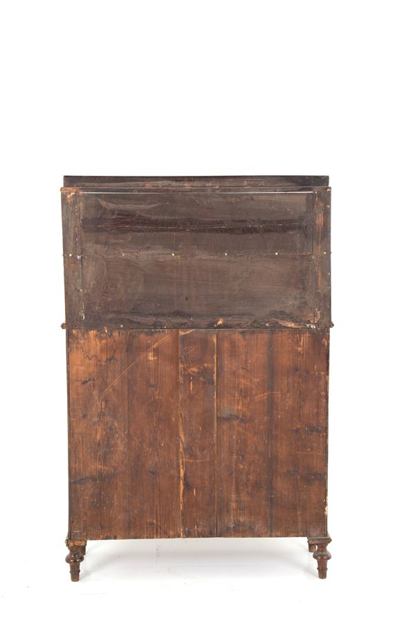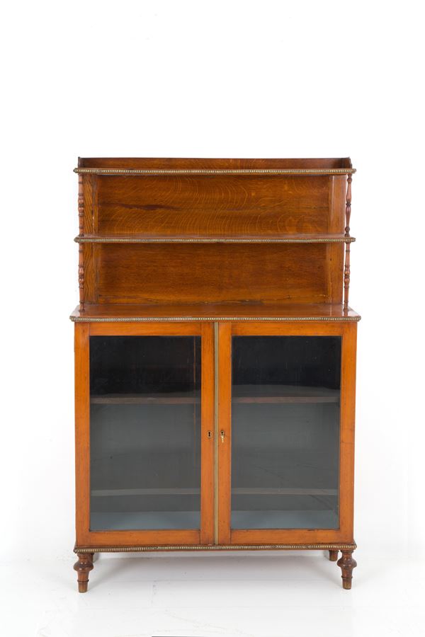 Credenza con alzatina in legno con profili in bronzo dorato e ante in vetro. XIX secolo. Lievi difetti.