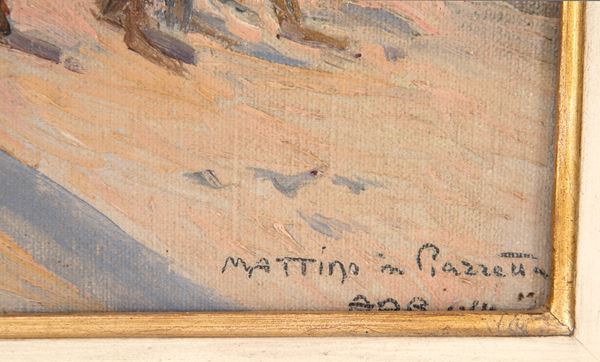 Dipinto olio su tela raffigurante "VEDUTA DA PIAZZA SAN MARCO". Intitolato "MATTINA IN PIAZZETTA" e siglato ADB/VII in basso a destra. In cornice.