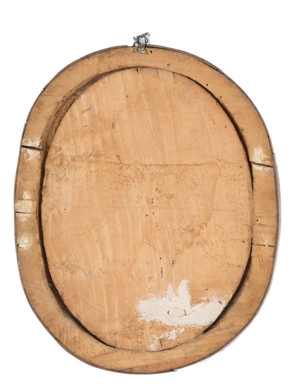 Dipinto ovale olio su tela applicata su tavoletta raffigurante "SAN GEROLAMO". XVIII secolo. In cornice in legno lastronato. Lievi difetti e restauri.