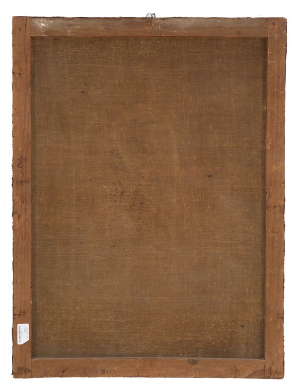 Dipinto olio su tela raffigurante "VERGINE ADDOLORATA CON CHERUBINI". Fine XVII secolo. Già rintelato e rintelaiato.