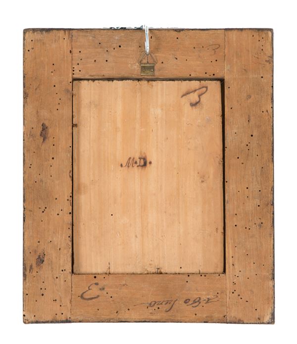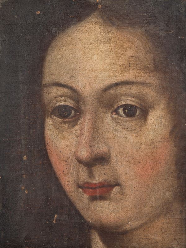 Dipinto olio su tela applicata su tavoletta raffigurante "VOLTO DI DONNA". Fine XVII secolo. In cornice coeva. Lievi difetti.