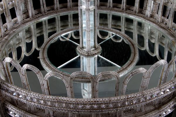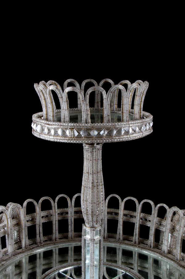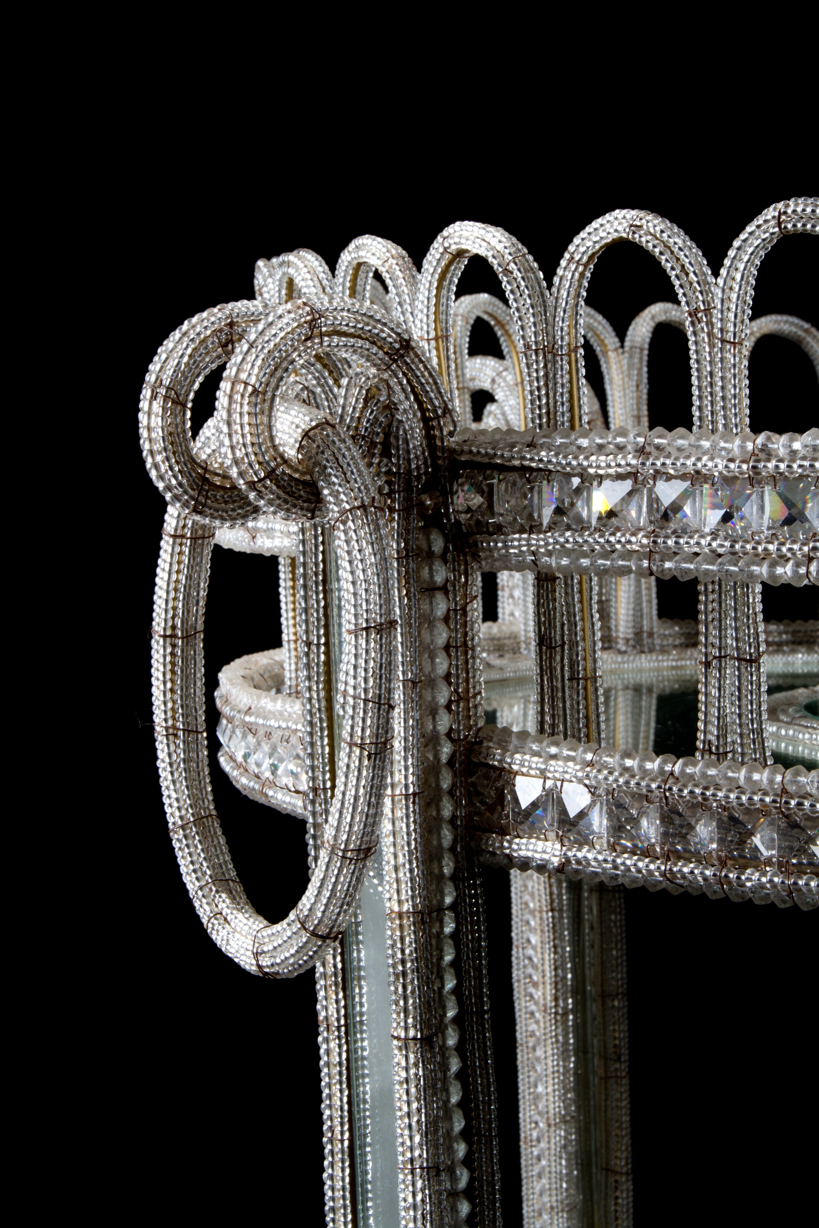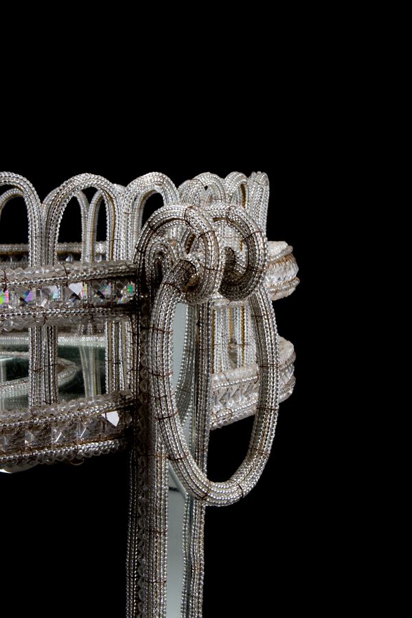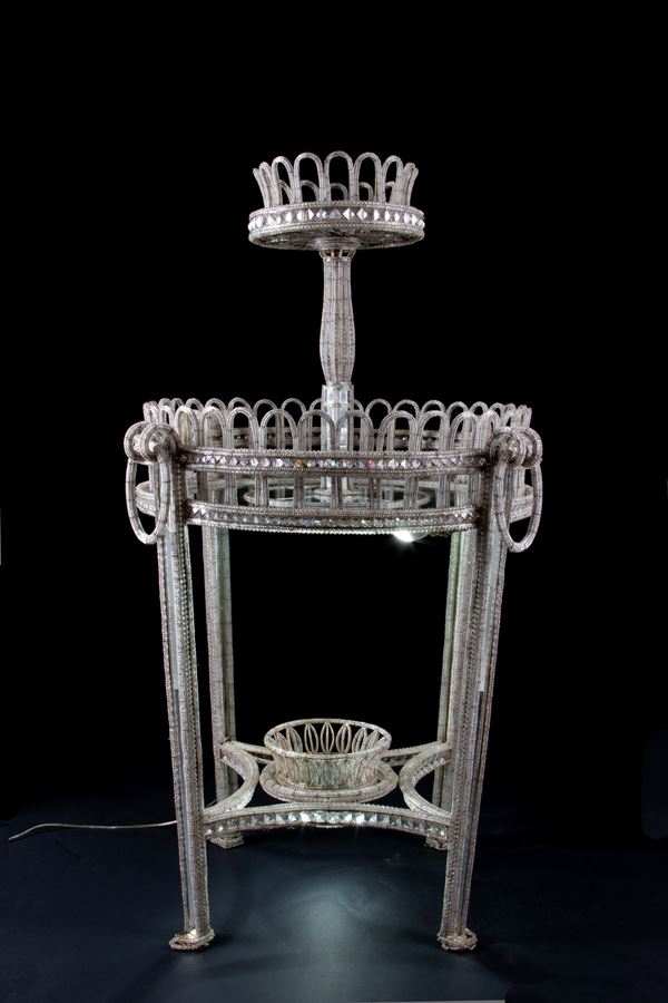 Fioriera montata a lampada in perline di vetro e specchi. Seconda metà del XX secolo.