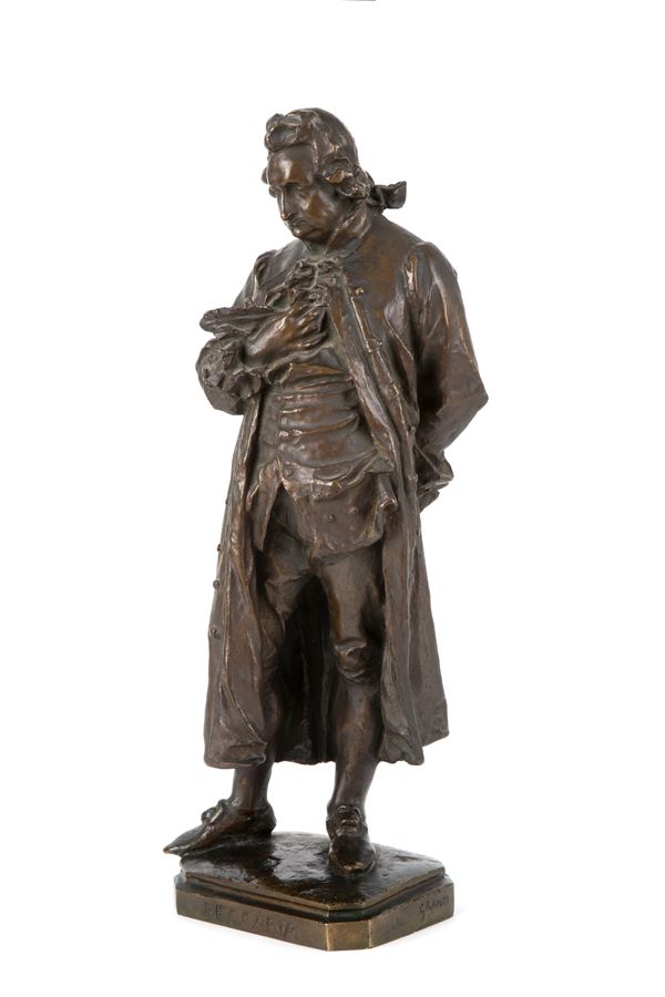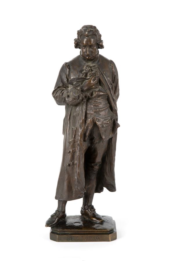 Scultura in bronzo raffigurante "CESARE BECCARIA". Firmata in basso a destra.