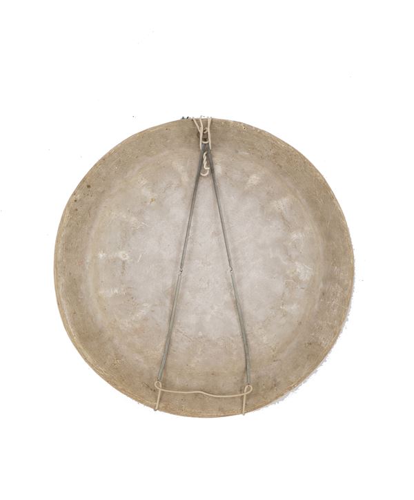 Piatto da parata in papier maché argentato e dorato. XIX secolo. Lievi difetti.