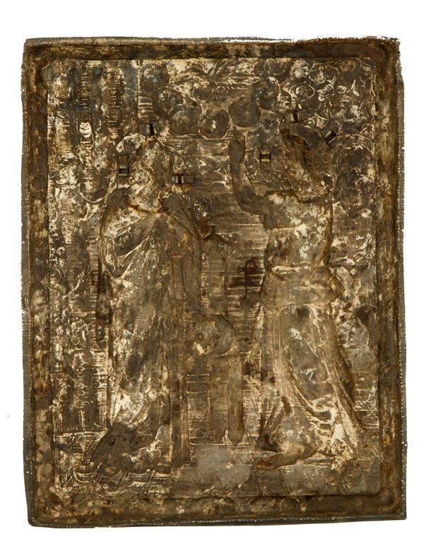 Placca in argento sbalzato raffigurante "L'ANNUNCIAZIONE". XVIII secolo.