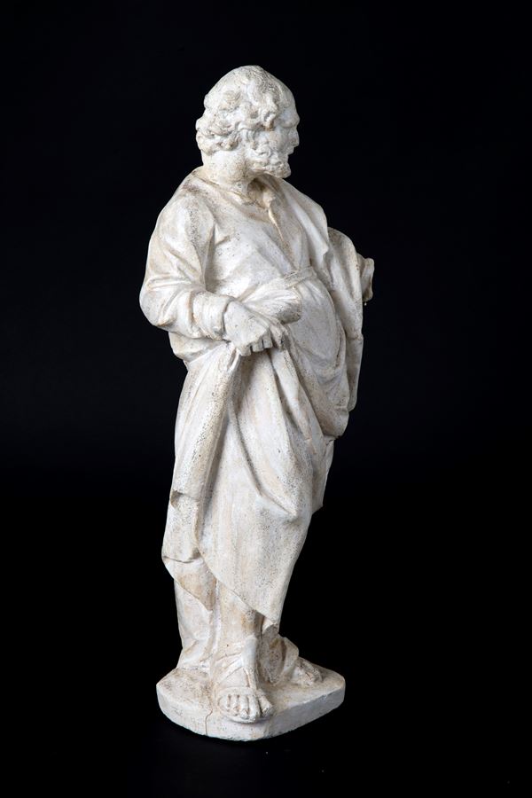 Statua in materiale impastato raffigurante "PROFETA". XVIII secolo. Difetti e mancanze.