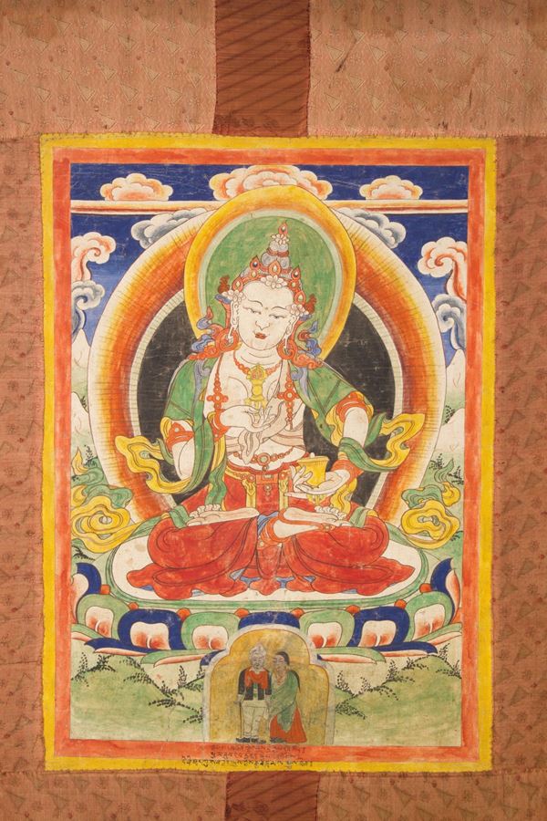 Tanka su lino raffigurante "VAJRASATTVA". Cina. Lievi difetti.