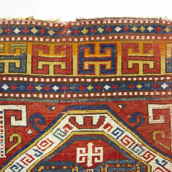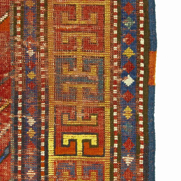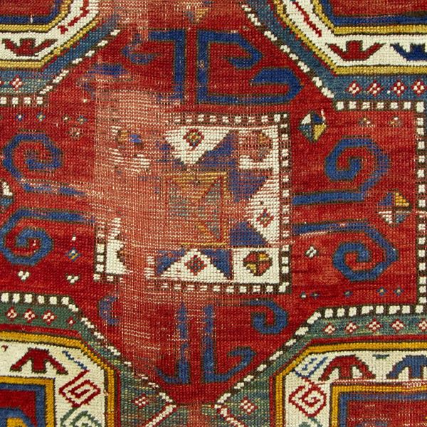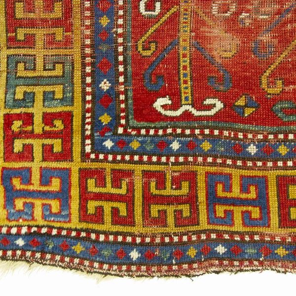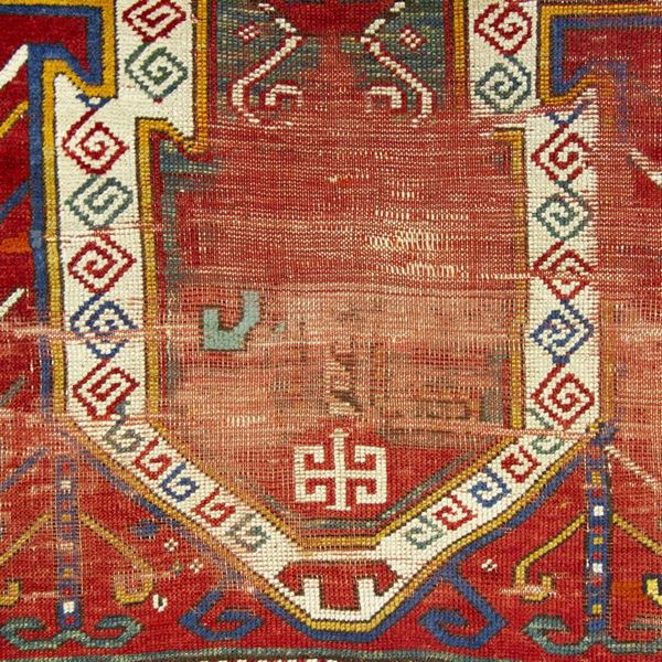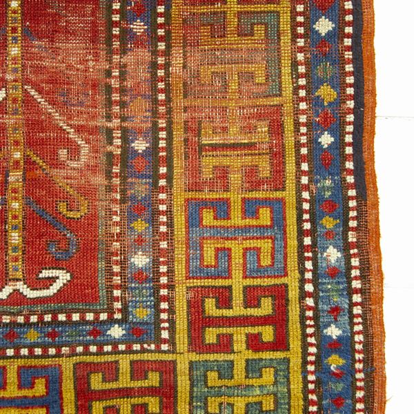 Tappeto Kazak Sewan. Caucaso. Seconda metà del XIX secolo. Aree consumate sul campo, da restaurare.