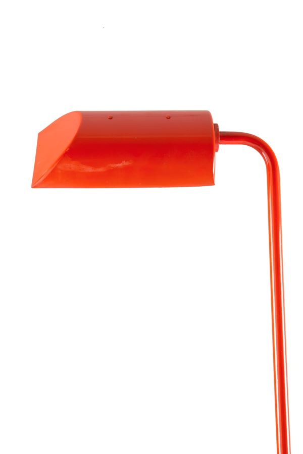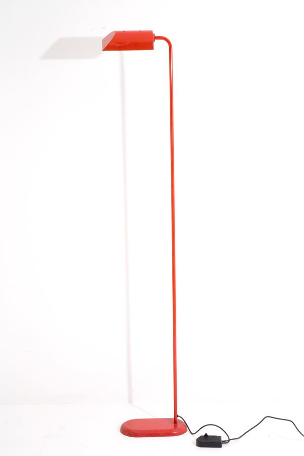 Applique e piantana in metallo verniciato rosso. Produzione ZONCA SPA. Con targhetta del produttore.