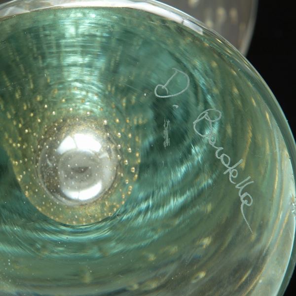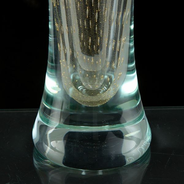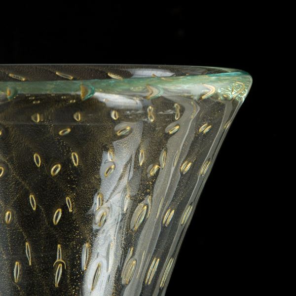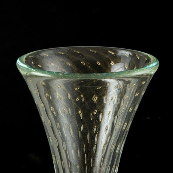 Vaso a tromba in vetro di Murano con bolle. Firmato sul fondo.