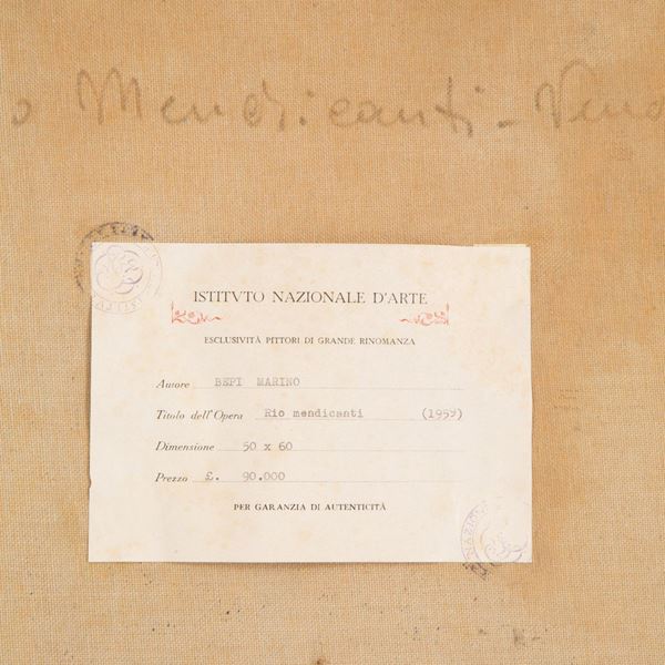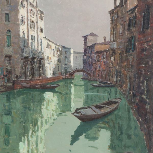 Dipinto olio su tela intitolato "RIO MENDICANTI, VENEZIA" sul retro. Firmato in basso a sinistra. Con garanzia di autenticità dell'Istituto Nazionale d'Arte sul retro. In cornice.