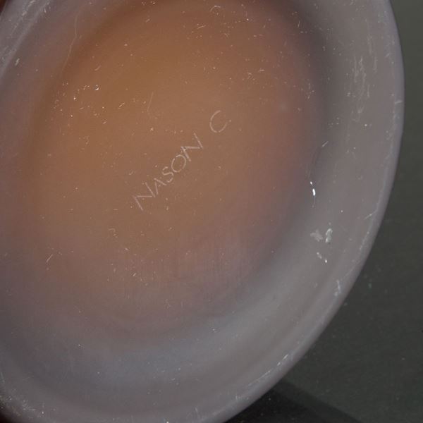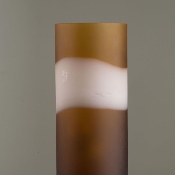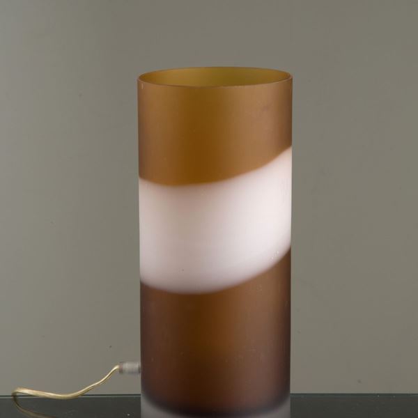 Lampada in vetro di Murano color ambra e bianco opalino. Firmata sul fondo.