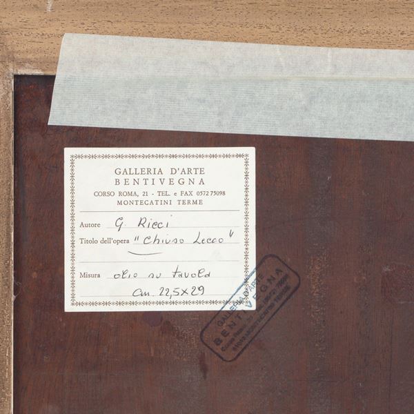 Dipinto olio su tela applicata su tavola intitolato "CHIUSO, LECCO". Firmato in basso a sinistra. In cornice.