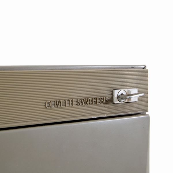 Coppia di schedari a quattro cassetti in metallo grigio. Serie Synthesis. Produzione OLIVETTI. Anni '60. Segni di usura.