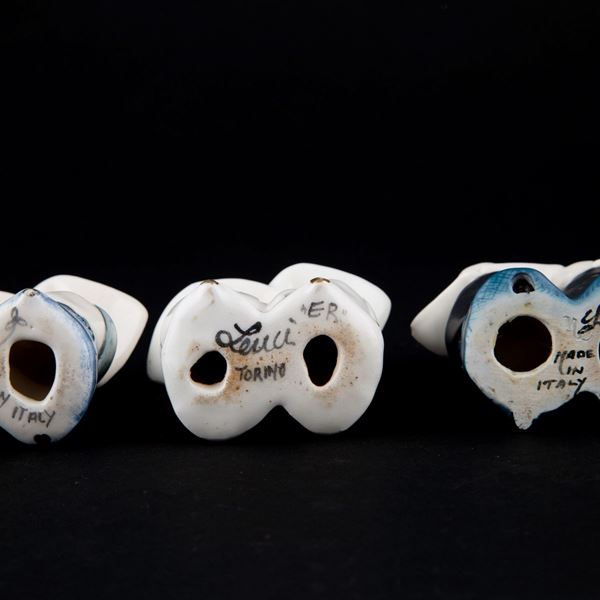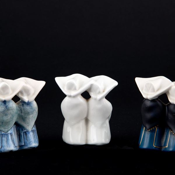 Tre sculture in ceramica raffiguranti "COPPIE DI MONACHE". Produzione LENCI. Marcate sul fondo. XX secolo.