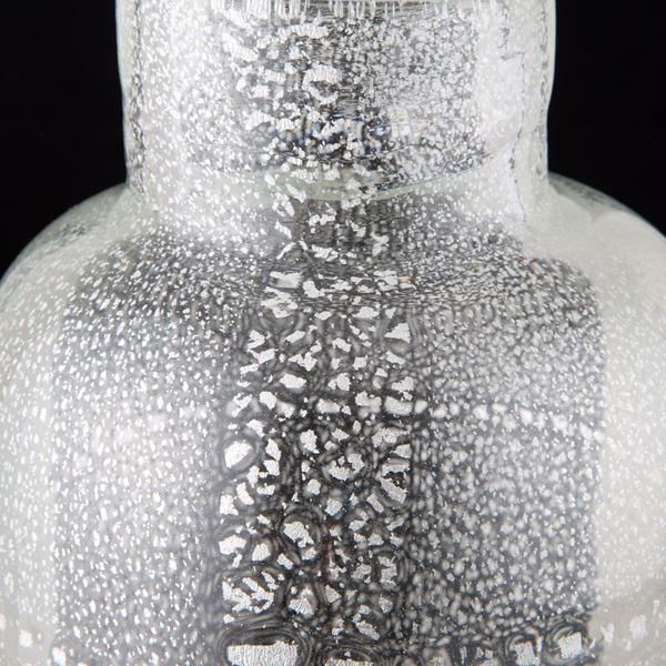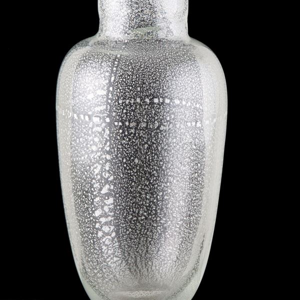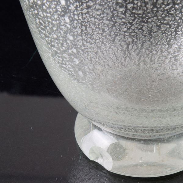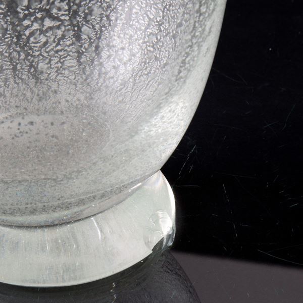 Vaso in vetro trasparente di grosso spessore. Piccola rottura sulla base.
