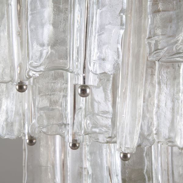 Lampadario in vetro soffiato a tre stadi. Produzione VENINI. Difetti e mancanza.