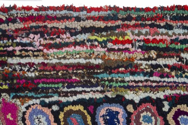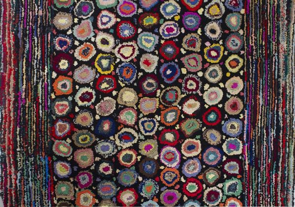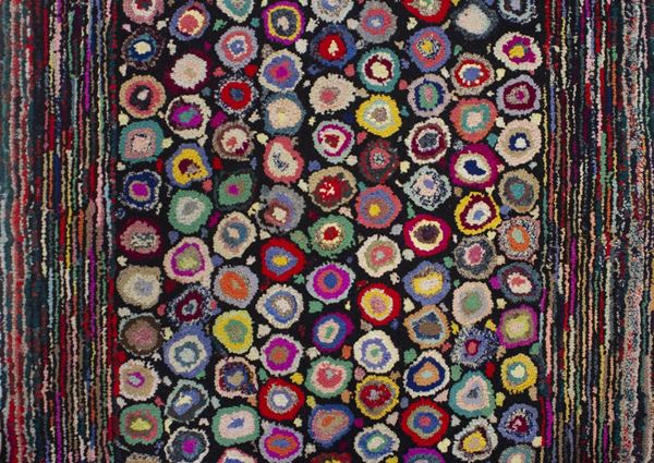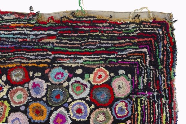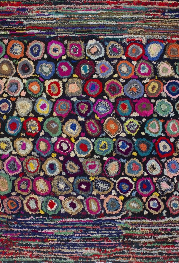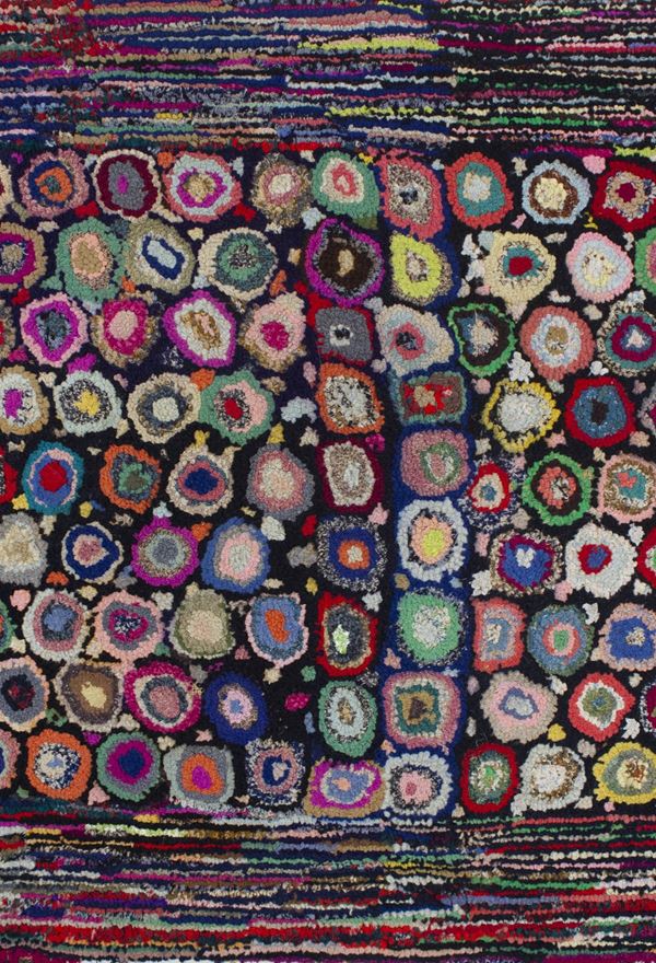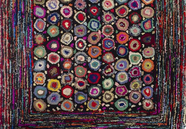 Tappeto Hook in lana e vari tessuti. Stati Uniti. Metà XX secolo. Ottimo stato di conservazione.