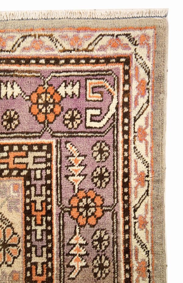 Tappeto Khotan. Turkestan Orientale. Prima metà del XX secolo. Buono stato di conservazione, campo in vello.