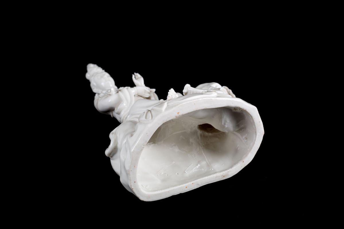 Due sculture in porcellana bianca raffiguranti "GUANYIN SU CANE DI FO E SU ELEFANTE". Cina. XX secolo.