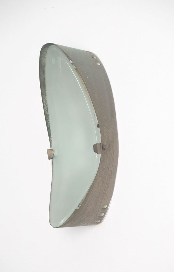 Applique in ottone zincato e vetro zigrinato. Produzione FONTANA ARTE. Anni '60. Lievi difetti e segni di usura del tempo.
