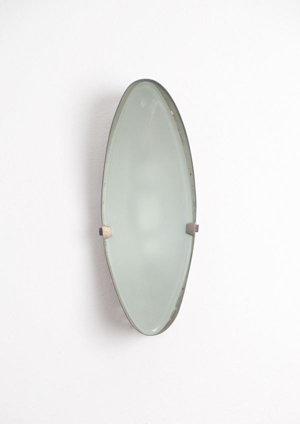 Applique in ottone zincato e vetro zigrinato. Produzione FONTANA ARTE. Anni '60. Lievi difetti e segni di usura del tempo.