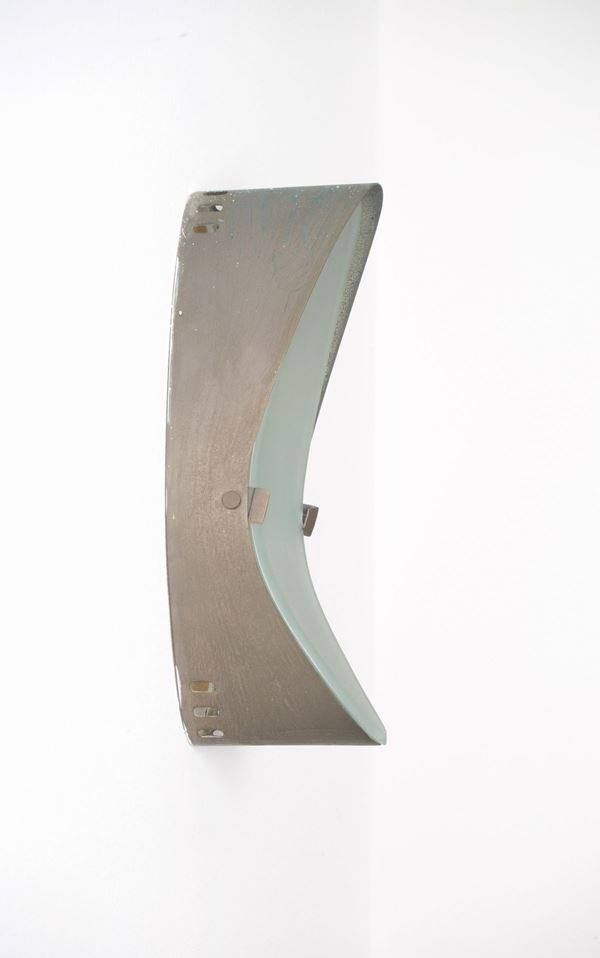 Applique in ottone zincato e vetro zigrinato. Produzione FONTANA ARTE. Anni '60. Lievi difetti e segni di usura del tempo.